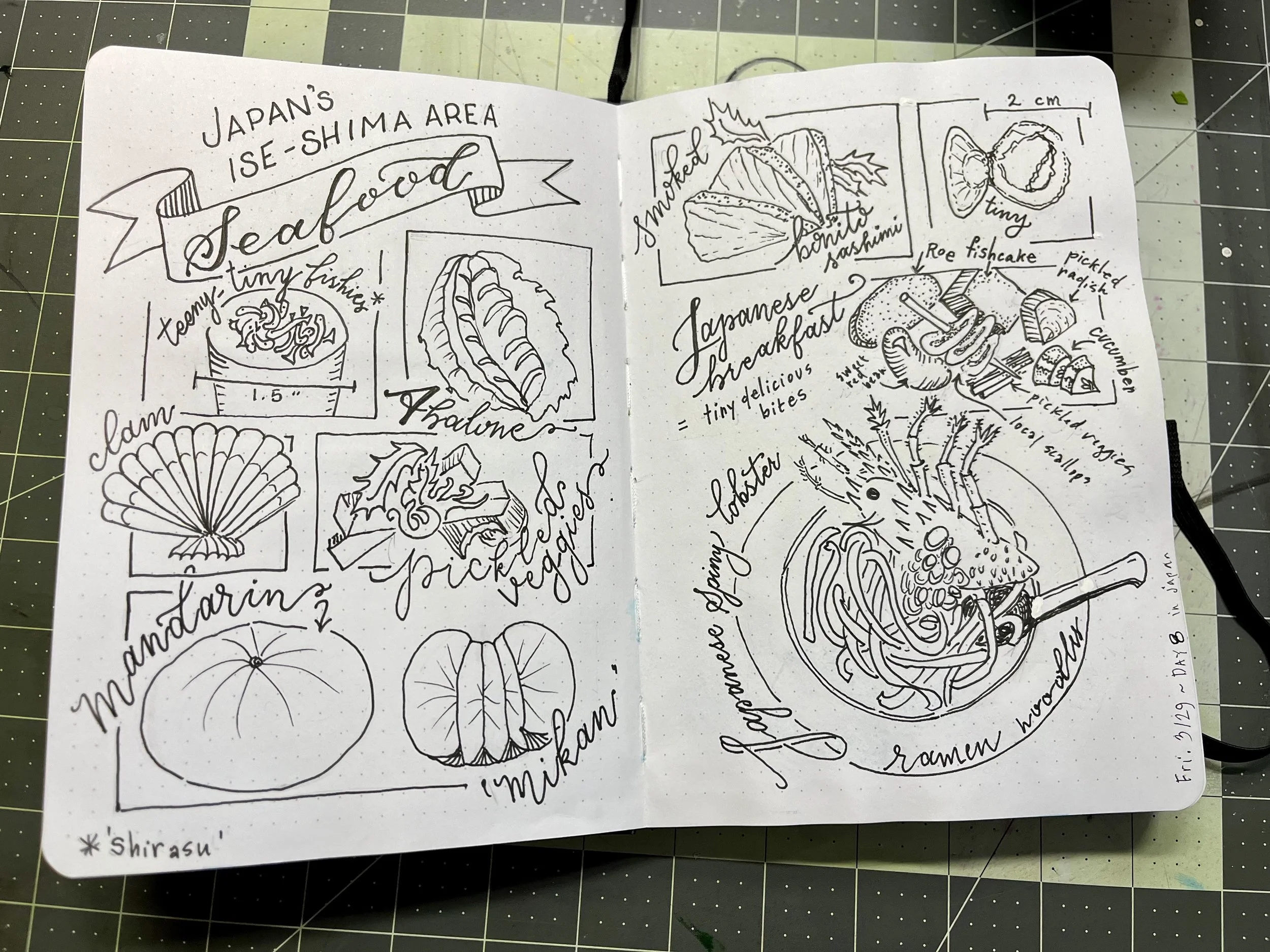 Inked linework of my illustrated journal of all the delicious foods I ate while on a trip to Japan’s Ise-Shima coast.